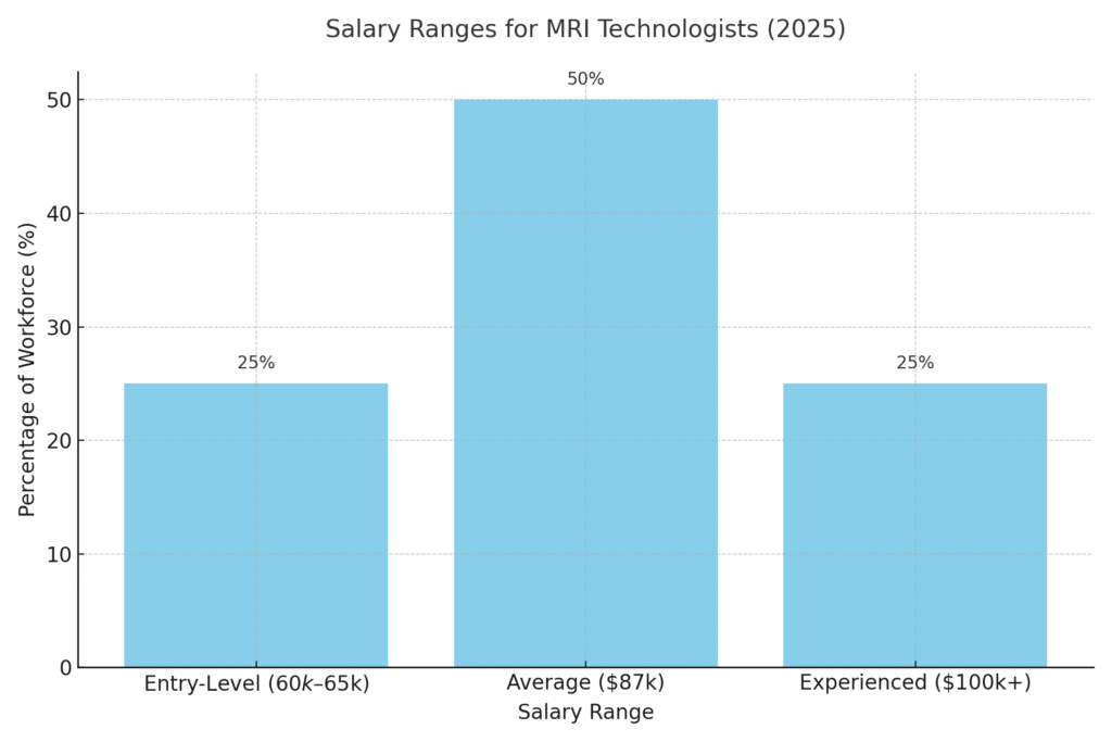- The average annual salary for MRI technologists in the U.S. is around $87,000.