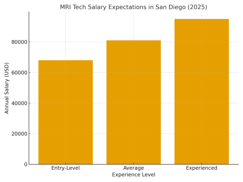 MRI technologists in San Diego earn an average salary between $78,000 and $85,000 per year, with experienced professionals making over $95,000 annually.